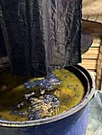 Juhendaja poolt on eelnevalt reservtrükis trükitud kangas, mille värvimist indigoga saate ise ühistööna proovida ning kanga osalejate vahel jagada.